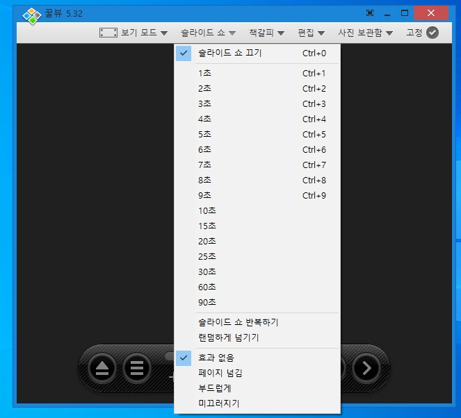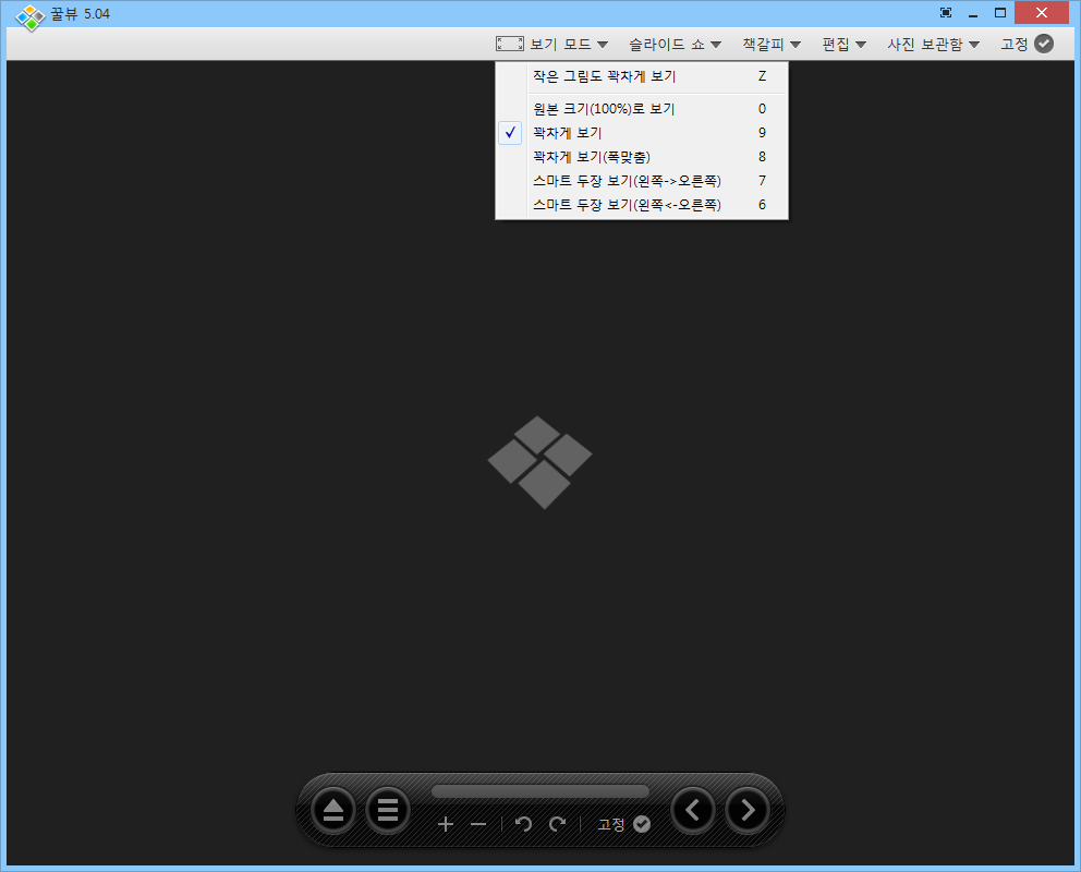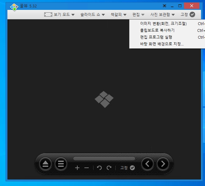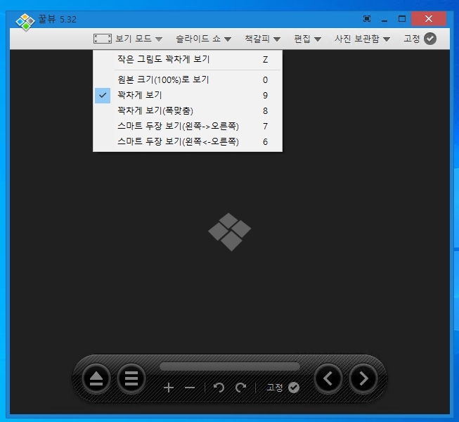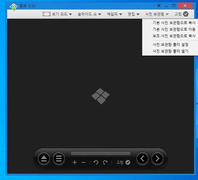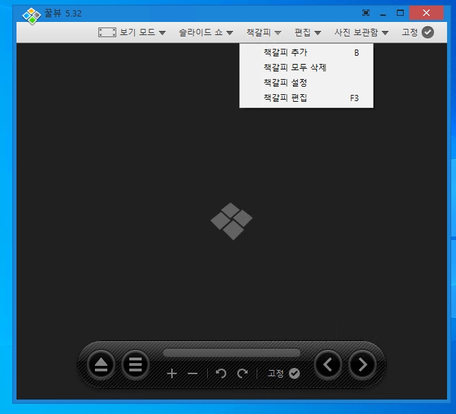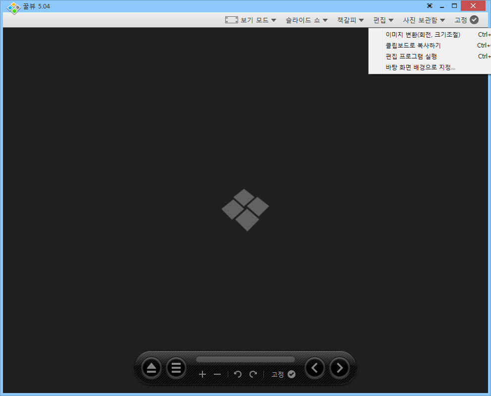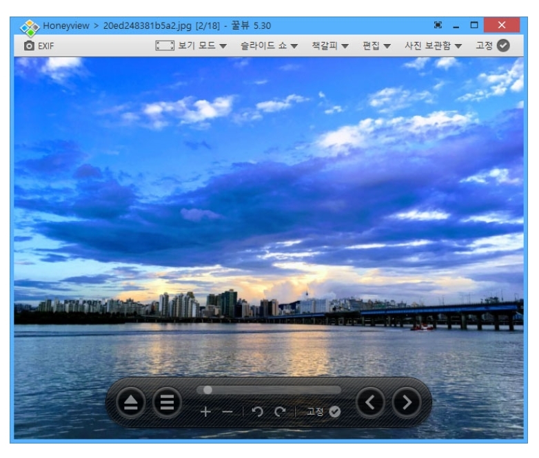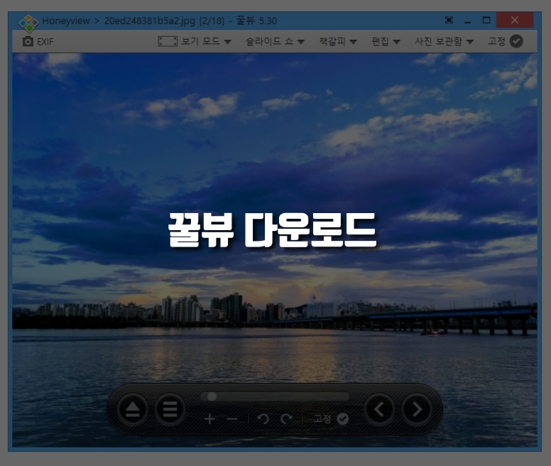 꿀뷰가 정상적으로 설치된다면 실행이 된다. 실행 화면은 위 이미지처럼 확인할 수 있다. 상단에 위치한 보기 모드 슬라이드 쇼, 책갈피, 편집, 보관함, 고정 등 기능을 통해서 보다 편리하게 무료 이미지 뷰어인 꿀뷰를 사용할 수 있다는점 알아두자.