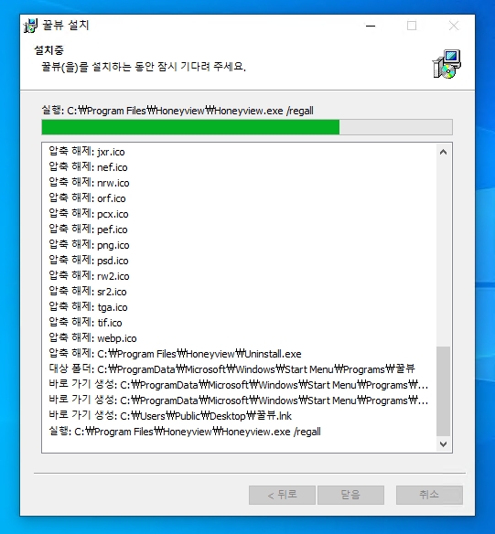 꿀뷰 다운로드 화면이다. 약관을 보면 현재 키플러의 홈페이지가 아니라 반디소프트에서 개발하고 배포하는 무료 소프트웨어라는 메시지가 있다. 바로 밑을 보면 어디서든 무료로 사용가능하다고 하니 어떤 이유에서든 간에 쫄 필요는 없다고 본다. 꿀뷰 설치시 추가 옵션으로 프로그램 그룹 생성, 아이콘 생성, 확장자 연결이 있다. 바탕화면이 더럽혀지는걸 원치 않다면 아이콘 생성을 해제하여 설치하면 되겠다. 나는 그냥 진행하도록 하겠다.