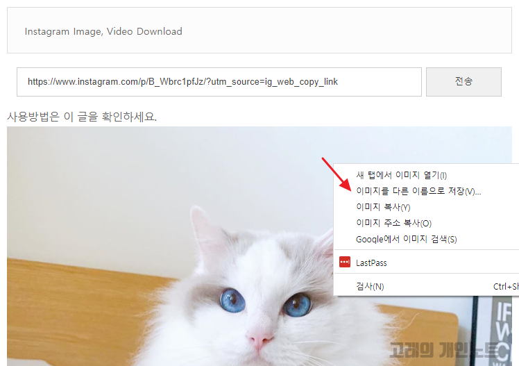 인스타그램 원본 이미지가 올라왔습니다. 우클릭해서 이미지를 다른 이름으로 저장 버튼을 눌러 다운로드 합니다.