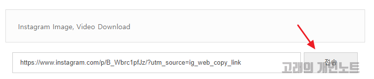 원본 다운로드할 인스타 이미지나 동영상 주소를 넣었으면 전송버튼을 누릅니다.