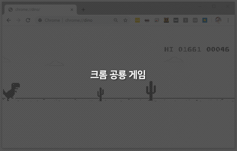 그럼 간단하게 크롬 공룡 게임하는 방법을 알아보도록 합시다.