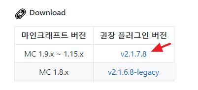 2. 화면 하단에 보이는 다운로드 영역에서 원하는 버전의 신들의전쟁 플러그인을 다운로드합니다.